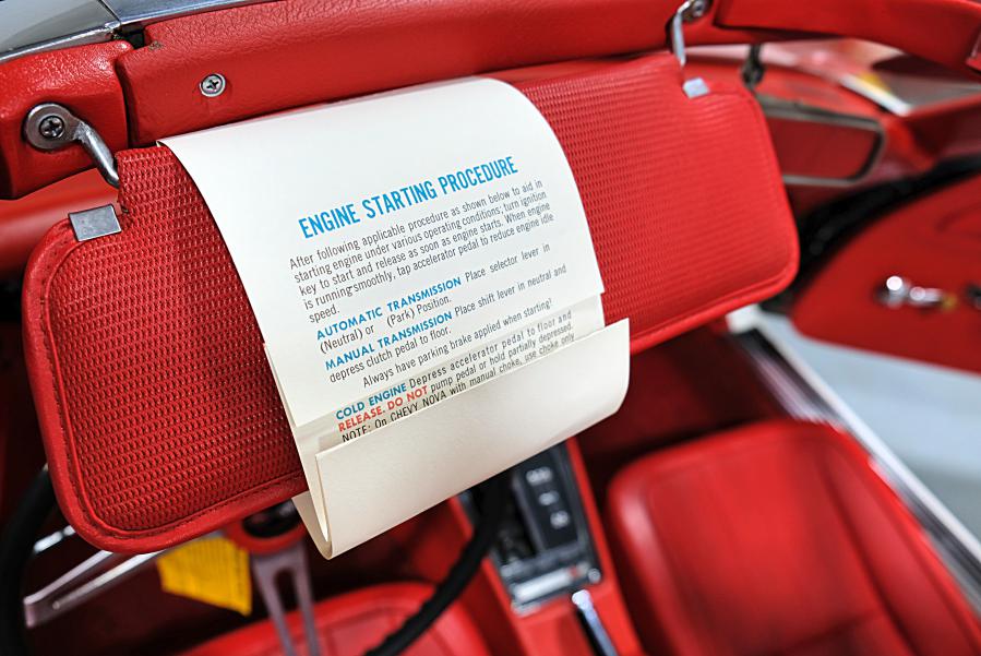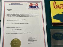 “Documents Include The Owners Manual With Protective Pouch, NCRS Awards Certification, NCRS Central Office Shipping Verification, Copy Of COPO Analysis By Noland Adams, GM Shop & Assembly Manuals, Knock-Off Wheel Guide, Radio & Antenna Instructions, Misc Service & Restoration Receipts.”