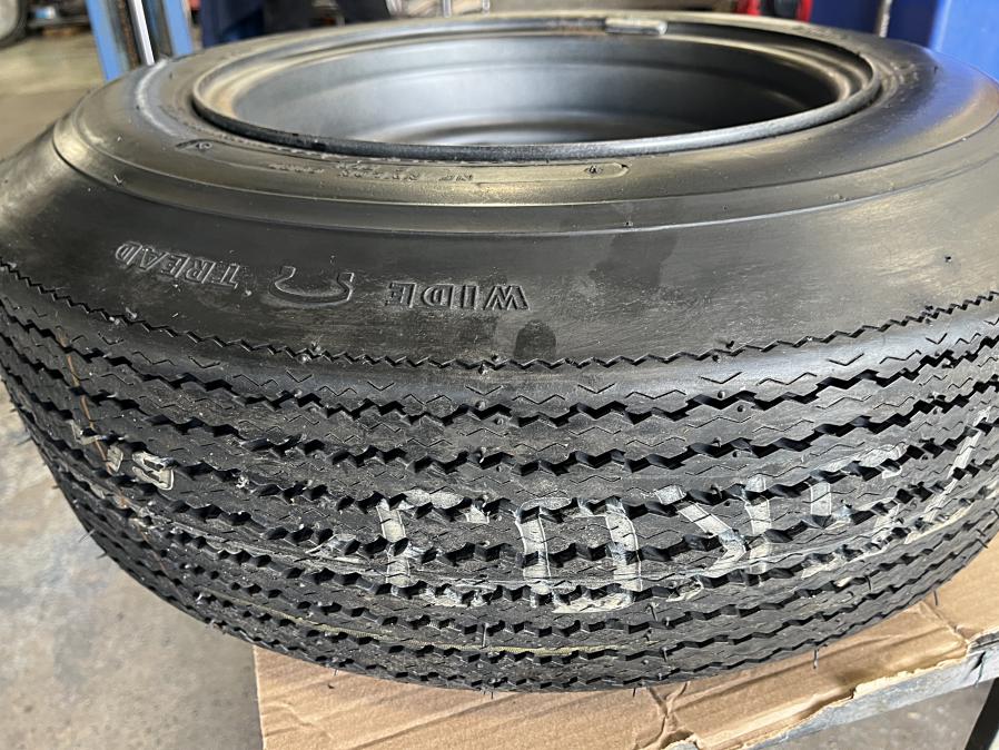 “F70 X 15 Goodyear White Stripe Tires” (code PT7)”