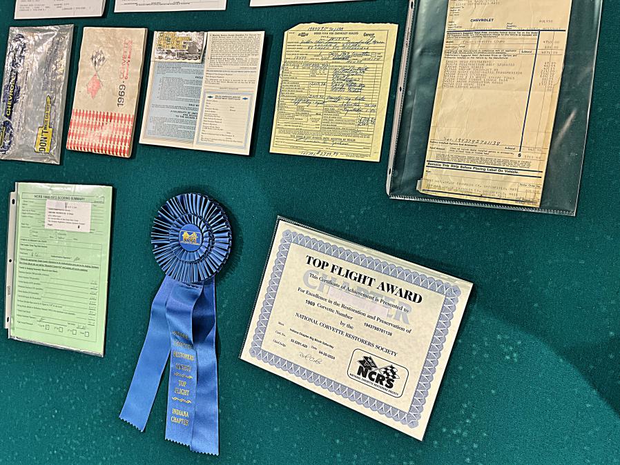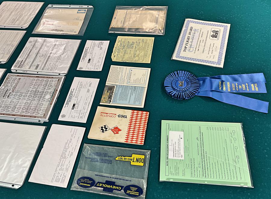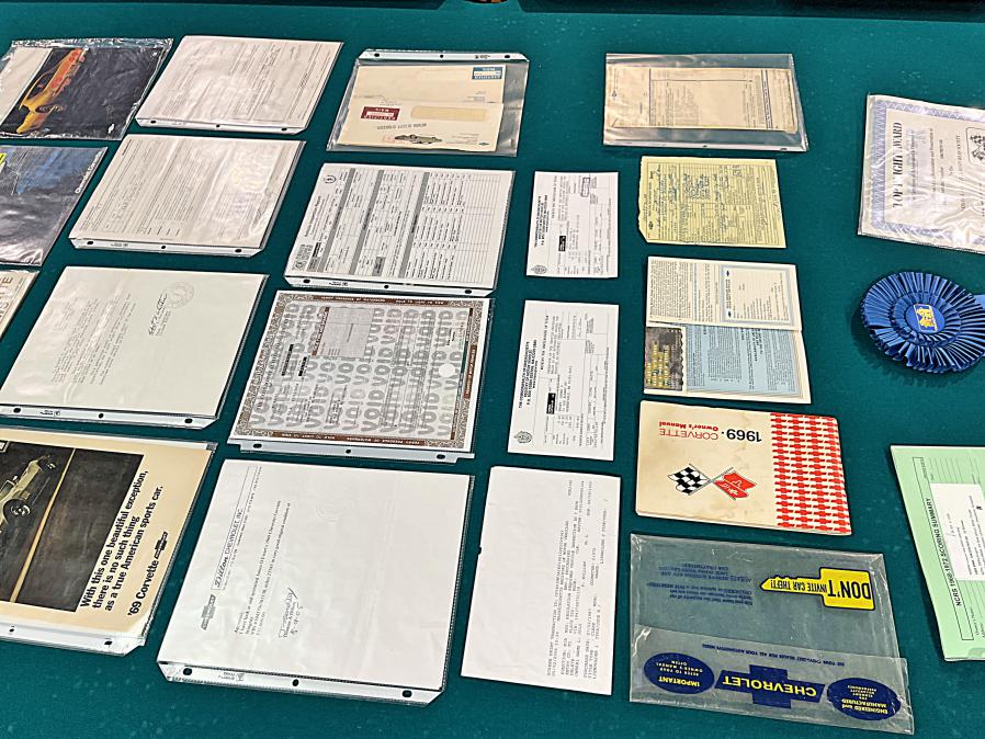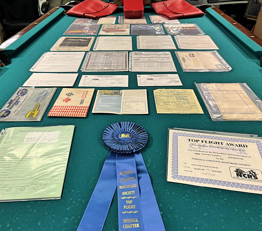 “Extensive Documentation Including The Original Sales Agreement, Protect-O-Plate, Owner’s Manual With Protective Envelope, Delivery Instruction Booklets, Assorted Showroom Brochures, Title Copies, Registrations, Written History From Past Owner, GM Correspondence, Service Records, 2024 Top Flight Award With Ribbon And Judging Sheets!!!”