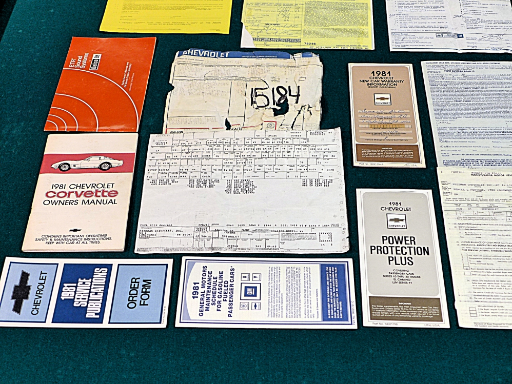 โDocuments Include Original Ownerโs Manual With Leather Storage Pouch, Laminated Window Sticker, Build Sheet, Delivery Booklets, VHS Demo Video, Corvette Tire Pressure Gauge, Pen Light And Ball Point Penโ