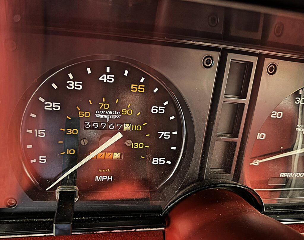 “Documents Include Original Owner’s Manual, Leather Pouch Containing The Corvette Logo Flashlight, Tire Gauge & Ballpoint Pen, Laminated Window Sticker, Warranty & Delivery Booklets, VHS Demo Tape, Never Used Ashtray, Service Records, Title, Showroom Brochure Featuring A 40TH Anniversary Roadster Centerfold Photo, Title, Registration & Carfax Copies.” (see photos)
