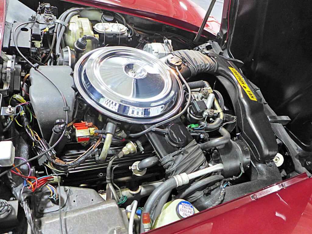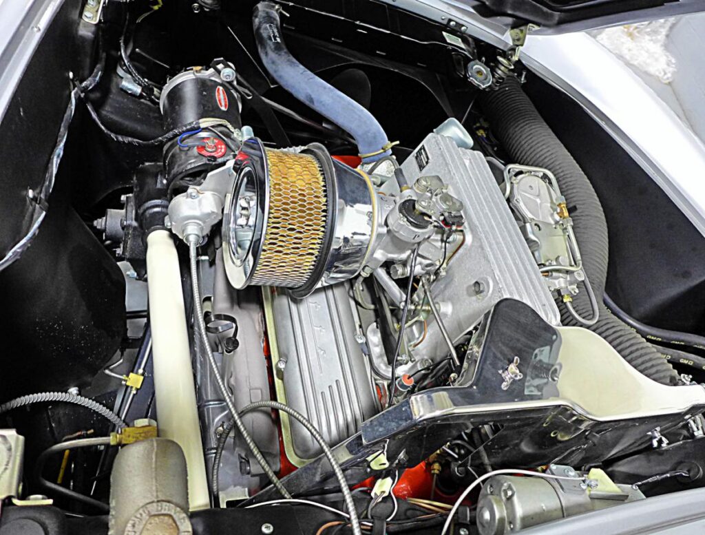 “Nicely Detailed Engine Compartment With Most Original Components In Place Including The Light Weight Magnesium Valve Covers, Stainless Steel Tubular Exhaust, Chrome Air Cleaner, Ignition Shielding And Complete Smog System” (see photos)